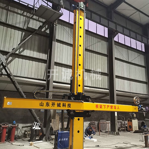 2、立柱與橫臂的安裝: 立柱通過吊裝方式安裝在基礎上并用螺釘緊固;隨后將滑板上的偏心滾輪松開并水平吊裝橫臂至位置后鎖緊固定零件和偏心輪等輔助部件以確保自動焊接操作機穩定性及度。